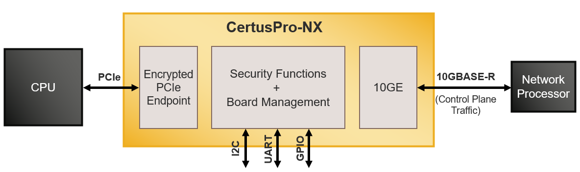 • Bridge CPU via PCIe to multiple control plane peripherals (I2C, UART, GPIO), board management functions, and 10GE control plane traffic