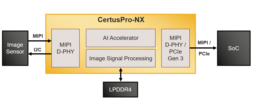 • Interface with popular image sensors over MIPI at up to 1.5 Gbps per lane, using High Performance IO (HPIO)