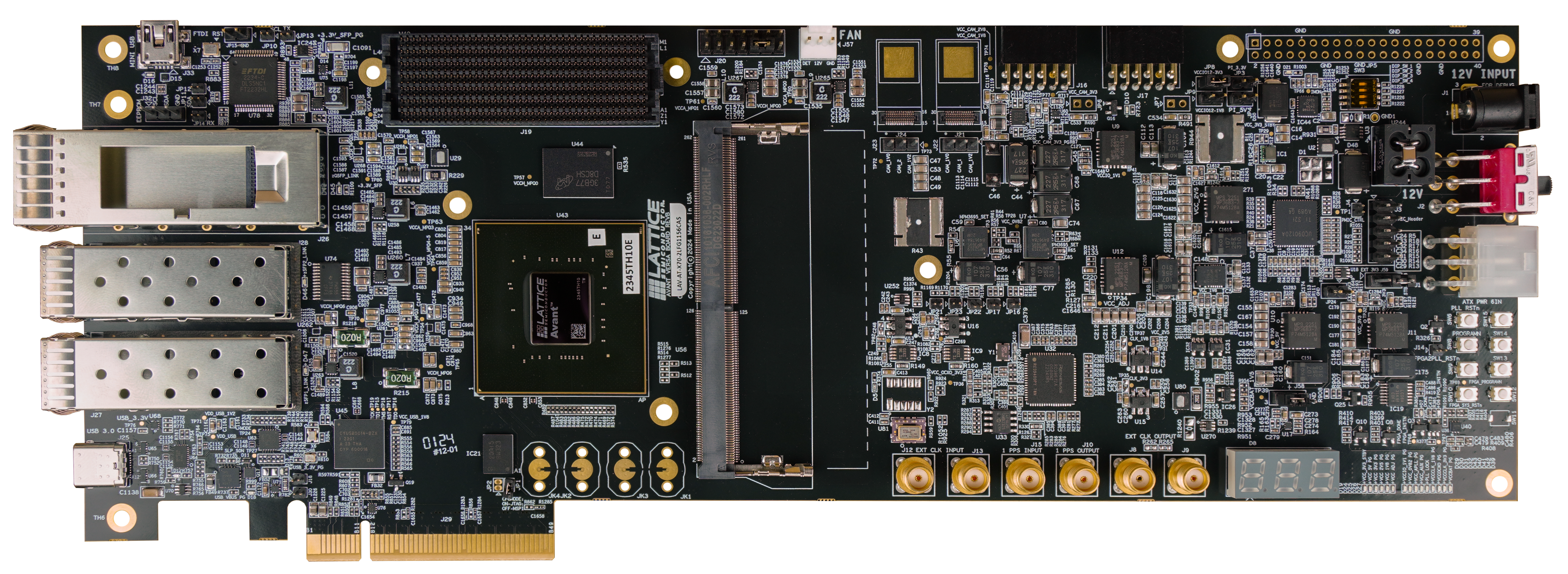 The board features the Avant-X 500 LC FPGA in a 1156-ball fcBGA package (LAV-AT-X70-3LFG1156I) with 25G SERDES, on-board LPDDR4, DDR5, PCIe, and majority of I/O bonded out to FMC+, PMOD, SMA and other connectors available for user-defined applications that allows designers to investigate and experiment with the features of the Avant family.