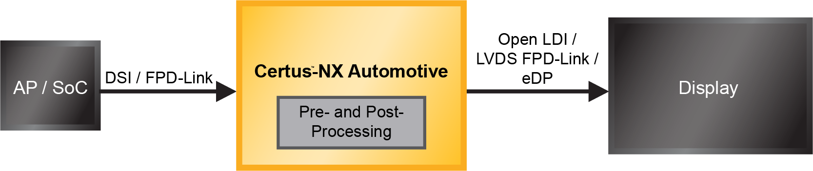 • Convert to/from MIPI DSI, Open-LDI/-LVDS and LVCMOS for high-speed, in-car connectivity.