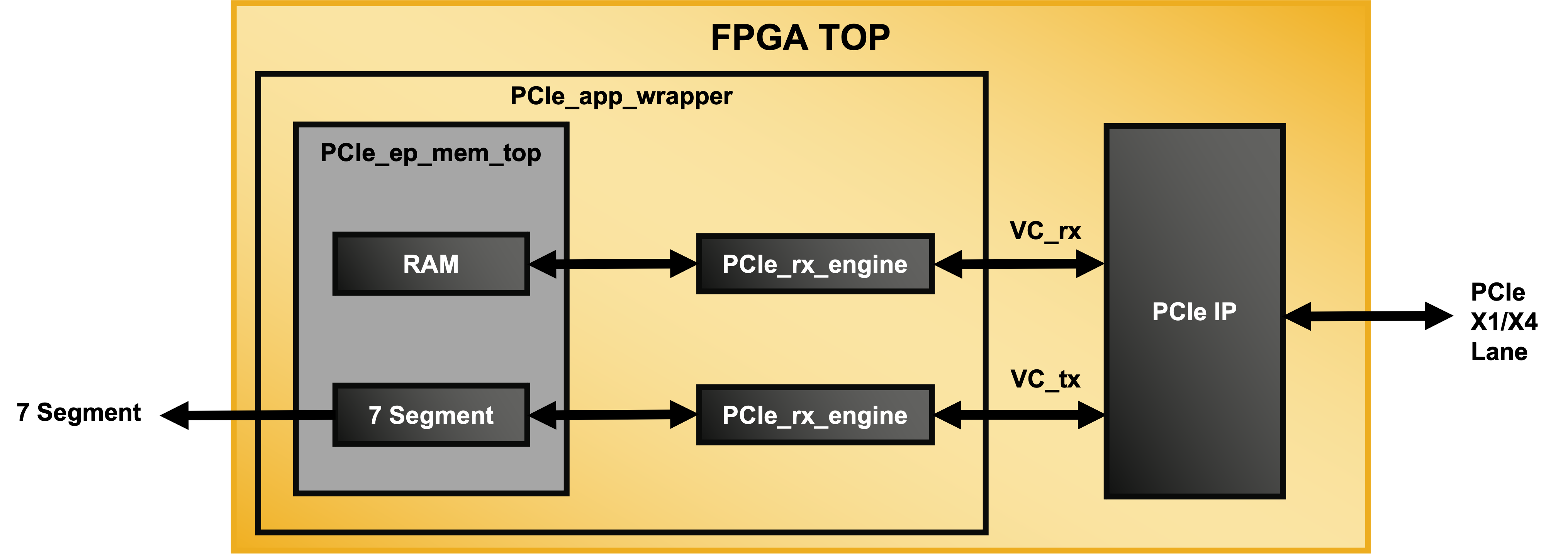 The PCIe Basic demo shows the capabilities of the Lattice FPGA and the PCI Express Endpoint IP core functionality in a PCI Express slot in a Linux (Ubuntu)/Windows 10 PC. This demo software allows to access memory and registers on the board and provides real time interaction with the FPGA hardware to demonstrate a functional PCI Express communications path between the application, driver software, and the FPGA IP.