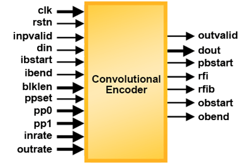 Lattice’s Block Convolutional Encoder IP core is a parameterizable core for convolutional encoding of continuous or burst input data streams. The core allows different code rates and constraint lengths and supports puncturing. It can operate in continuous or block mode, whichever is required by the channel. In block mode, either Zero Flushing or Tail Biting codes can be generated. All the configurable parameters, including operation mode, termination mode, generator polynomials, code rate, and puncture pattern, can be defined by the user to suit the needs of the application. The code rate and the puncture pattern can also be varied through the input ports dynamically, providing further flexibility for the IP usage. Lattice’s Block Convolutional Encoder IP core is compatible with many networking and wireless standards that use convolutional encoding.