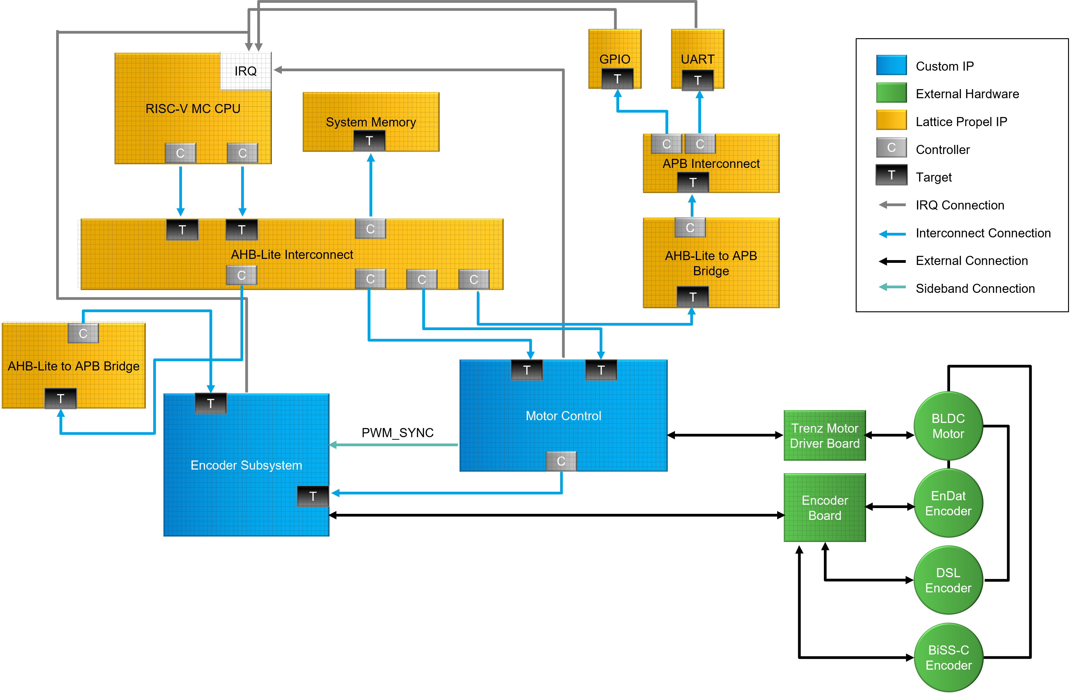 This Close Loop Brushless Direct Current (BLDC) Motion Control Reference Design describes and demonstrates an implementation of Industrial high-end encoder on real-time position feedback for speed control in the Closed-loop BLDC motor control system. It provides an example usage of integrating the encoder master IP and the motor control IP into a RISCV embedded control system on Lattice Certus NX FPGA device. The RD comes together with a demo GUI application for user to configure and run the BLDC motor.