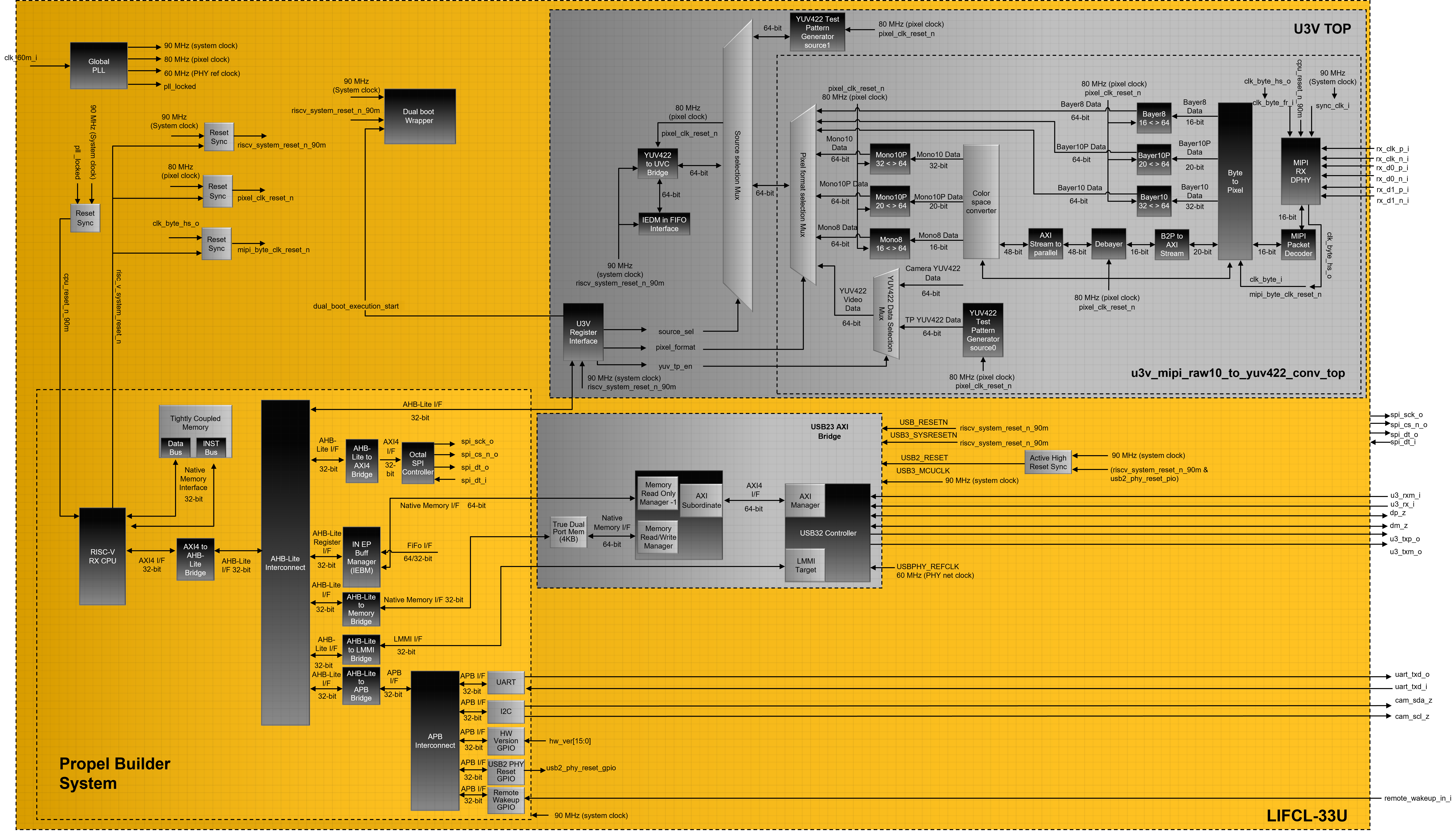 The Lattice Semiconductor CrossLinkU™-NX USB3 Vision (U3V) reference design provides a template for video streaming from camera sensor over USB using the USB hard IP in a CrossLinkU-NX device. The U3V is an interface standard for industrial cameras. This design implements the standard defined in the U3V specifications.