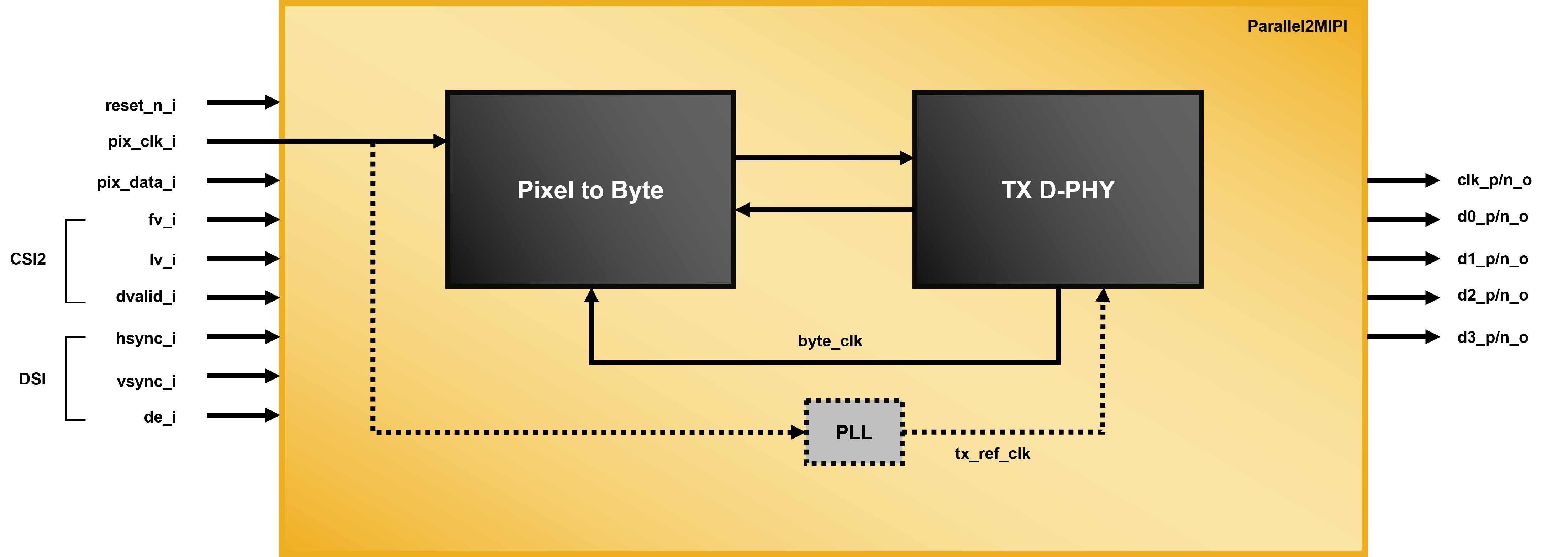 The Mobile Industry Processor Interface (MIPI®) D-PHY was developed primarily to support camera and display interconnections in mobile devices, and MIPI D-PHY has become the primary high-speed PHY solution in industry for these applications in smartphones. MIPI D-PHY is typically used in conjunction with MIPI Camera Serial Interface-2 (CSI-2) and MIPI Display Serial Interface (DSI) protocol specifications. The interface meets the demanding requirements of low power, low noise generation, and high noise immunity that mobile phone designs demand. MIPI D-PHY is a practical PHY for typical camera and display applications which is designed to replace traditional parallel bus based on LVCMOS or LVDS. However, many processors and displays and cameras still use RGB, CMOS, or MIPI Display Pixel Interface (DPI) as interface.