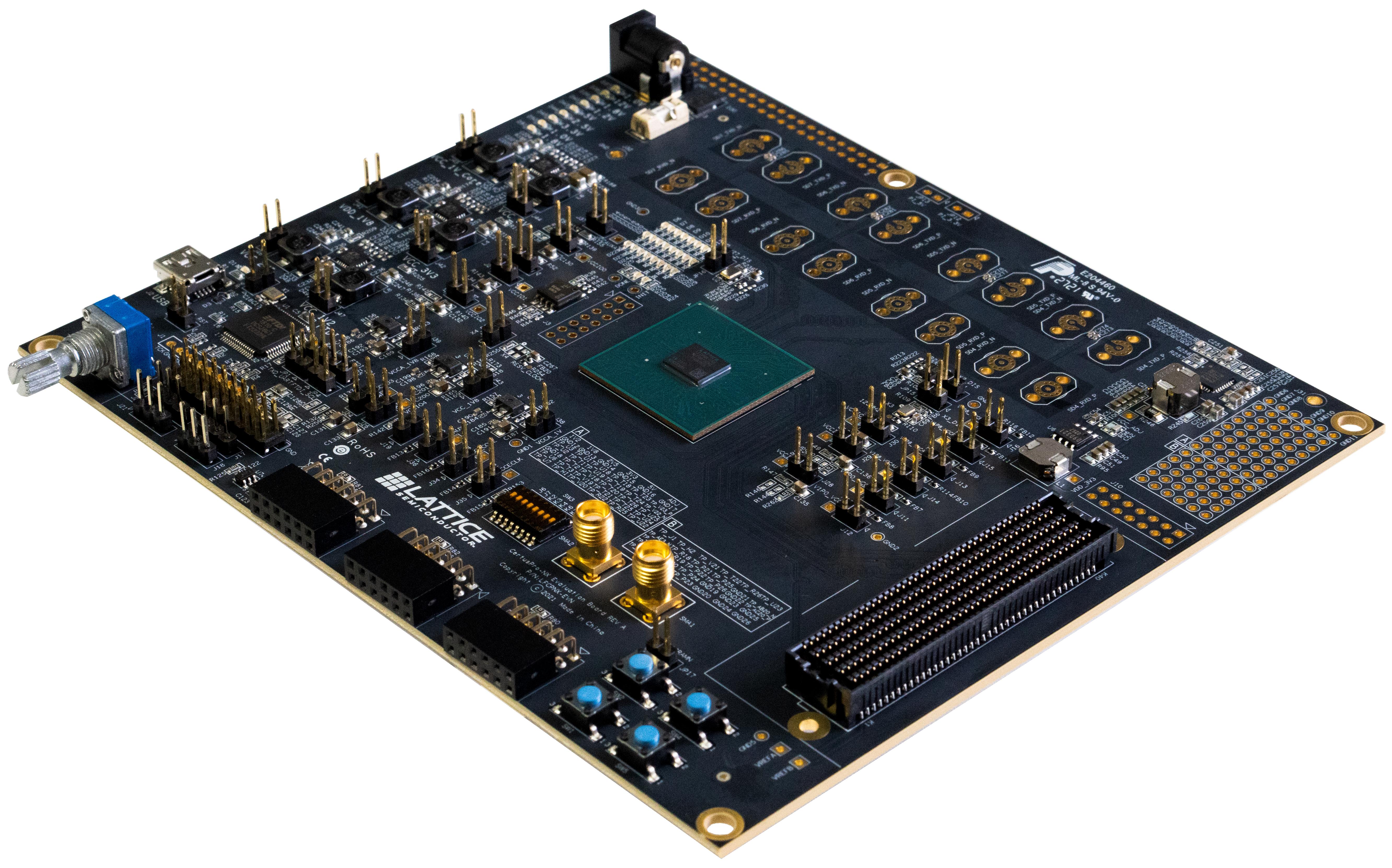 Expandable usability – The board features a CertusPro-NX 100K LC FPGA in a 672-ball LFG672 package (LFCPNX-100-9LFG672C). In addition, the board has an ability to expand the usability of the CertusPro-NX through popular expansion headers – including High Pin Count FPGA Mezzanine Card (HPC FMC), Raspberry Pi, Digilent Peripheral Module (Pmod™) and general purpose I/O expansion headers.