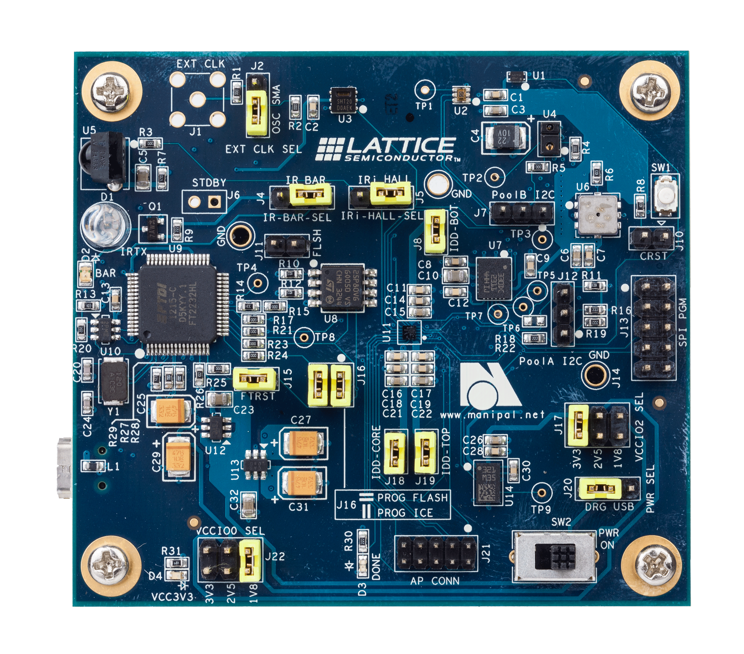 • Example of a working board using the iCE40LM4K with 25-ball, 0.35mm-pitch WLCSP package.