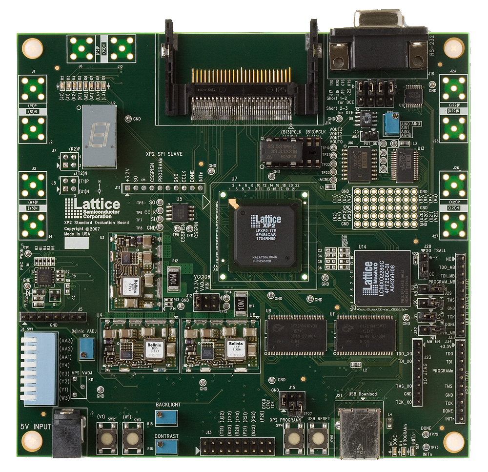 The LatticeXP2 Standard Evaluation Board is a flexible platform designed to help you quickly evaluate the features and performance of the LatticeXP2 FPGA, or aid in development of custom designs.