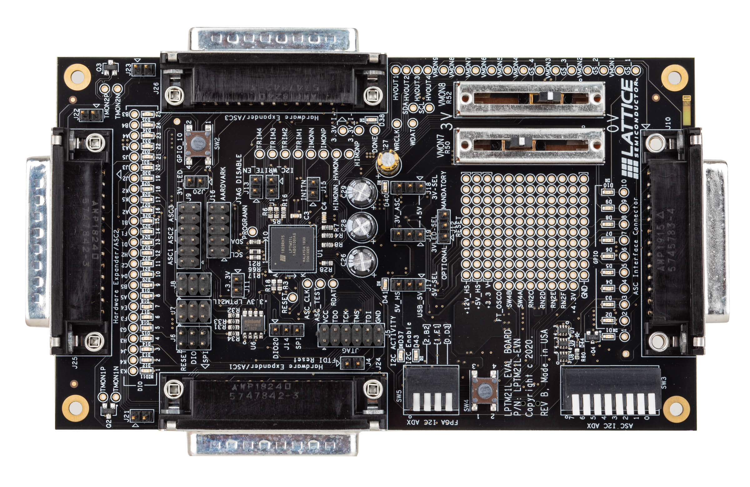The LPTM21L Evaluation Board is a versatile hardware platform for evaluating and designing with Platform Manager 2 devices (specifically with the LPTM21L100-Ball caBGA package). You can implement and debug your hardware management functions (power, thermal, and control plane management) and test them out with this board.