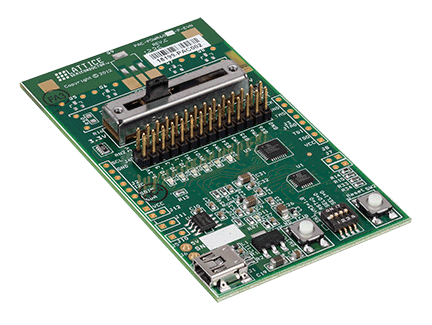 The POWR607/6AT6 Evaluation Board, an easy-to-use platform for evaluating and designing with the Lattice Power Manager II devices, POWR607 and POWR6AT6. In addition to the two Power Manager II devices, the board features a slide potentiometer, various switches and buttons for user input, and LEDs for feedback.