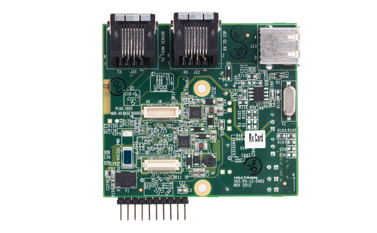 The SensorExtender Board allows the demonstration of an image sensor dislocated from an ISP. The SensorExtender Board, HDR-60 Base Board and MT9M024 NanoVesta Sensor Board are required to produce a working demonstration. The NanoVesta sensor plugs into the SensorExtender Board labeled Tx. Using the included CAT5E cable, it will be connected to the SensorExtender Rx board that plugs into the HDR-60 Base Board.
